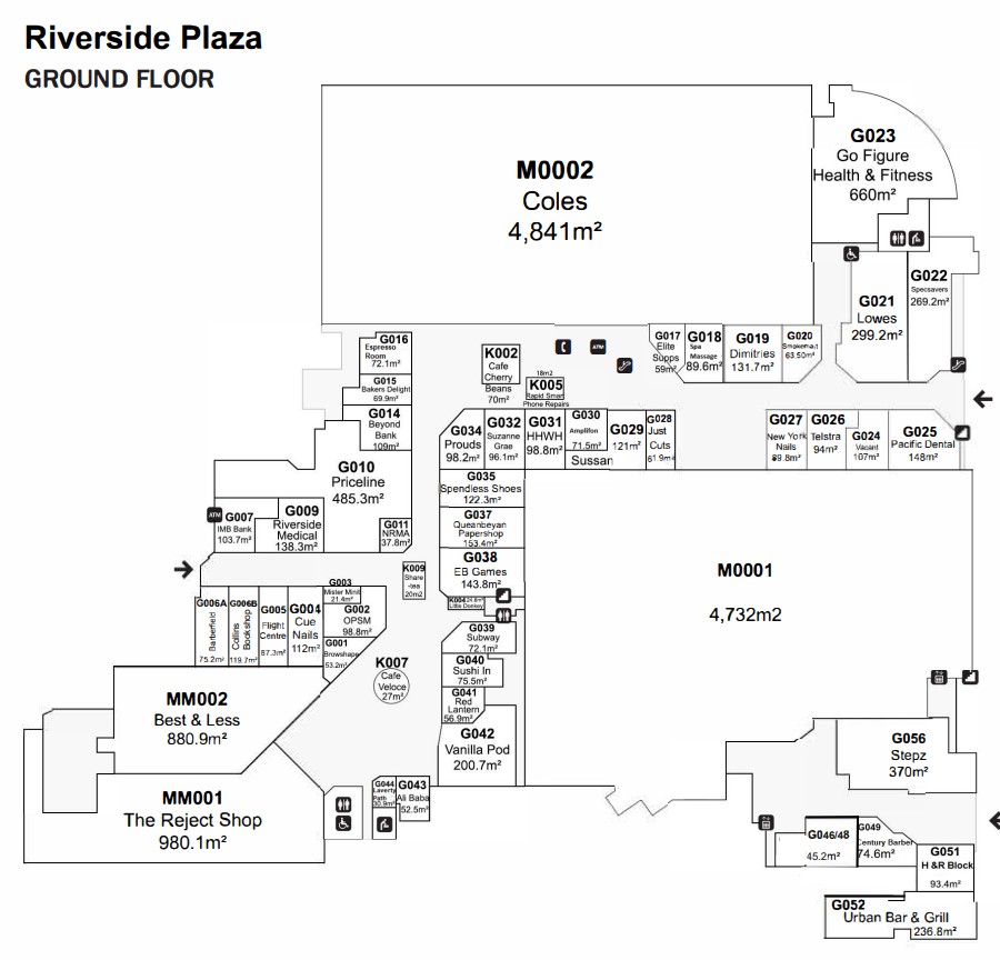 - Majors: Coles, Best & Less, Prieline, The Reject Shop
